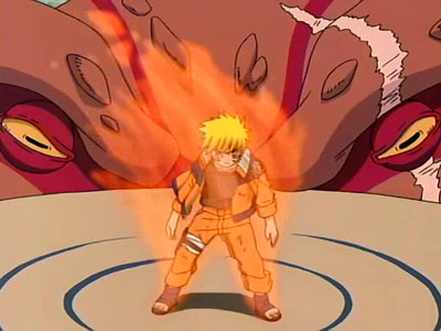 Descrição: Naruto, após precisar de chakra, utiliza da sua reserva do chakra da kyuubi para restaurar-se.
